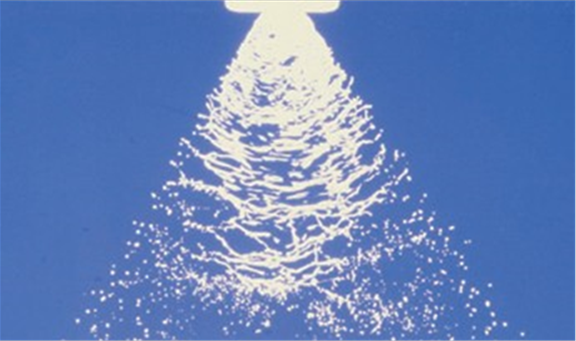 Slik dannes dråpene fra en flatdyse (stroboskopbilde). Foto: Nils Bjugstad.