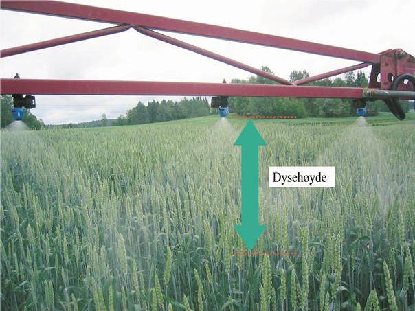 For spesielle dyser, for eksempel luftinjektordyser, skal derimot dysehøyden være 50 cm for å oppnå tilfredsstillende væskefordeling. For Danfoil-sprøyter er dysehøyden enda høyere, se egen bruksanvisning. Hvis bomsvingningene er betydelige, må dysehøyden økes, men da øker også avdriftsfaren. Av praktiske grunner vil derfor dysehøyden spesielt for store bombredder være noe høyere enn 40 cm.