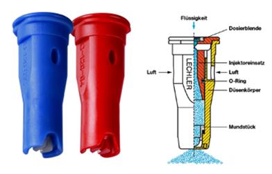 Eksempel på luftinjektordyse og prinsippskisse. Foto/illustrasjon: Lechler ID3.