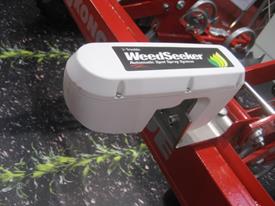 Sensorer som på ulike måter kan se ugras; Weedseeker som skiller mellom grønn masse og jord med integrert dyse som kun sprøyter der det er grønn masse (til venstre) og H Sensor bildegjenkjenningssystem fra Agricon som kan skille mellom ulike typer ugras (ca 50.000 bilder i basen) (til høyre). Begge sensorene brukes online og registerer og regulerer direkte. Foto: Nils Bjugstad, NMBU.