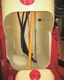 Gjennomskjæring av væsketank som viser gul sugeslange opp og ned til pumpe, samt øvrige returledninger. Legg merke til de glatte flatene og avrundede hjørnene. Skylletanken finnes nederst, foran. Foto: Nils Bjugstad, NMBU.